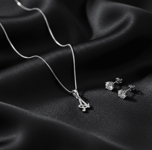 A' Initial Necklace and Cubic Zirconia Stud Earrings Set (Pack of 2)