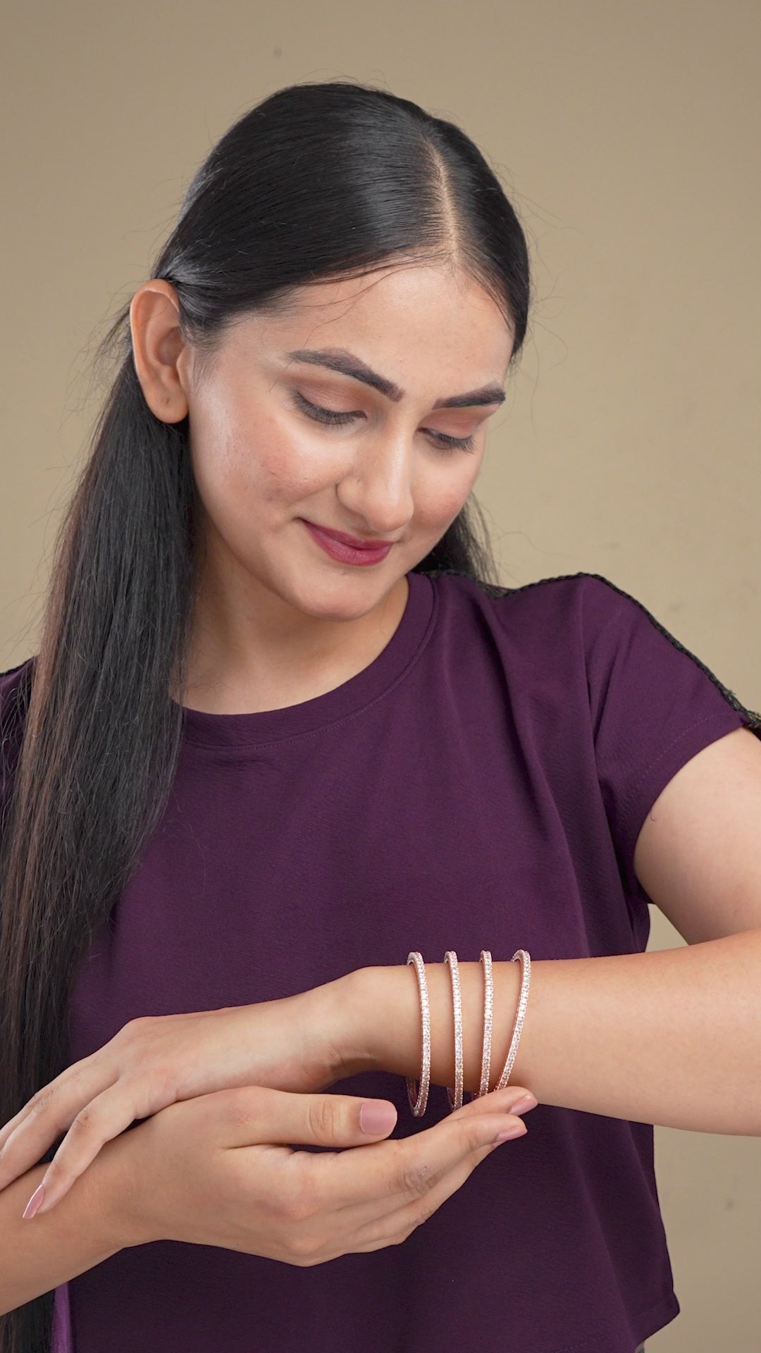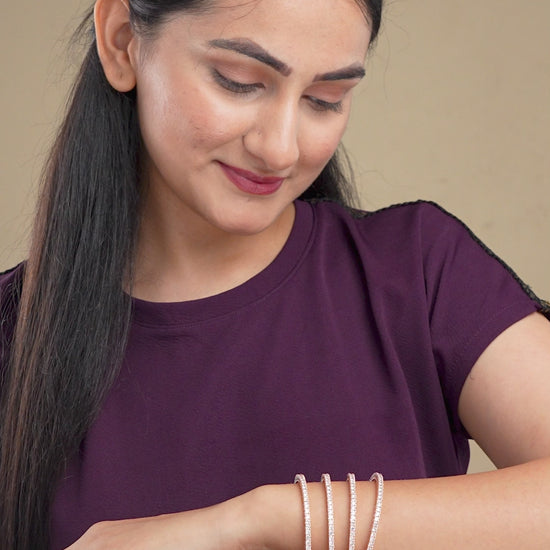 Enchanting White Rose Gold Bangles (Pack of 4)