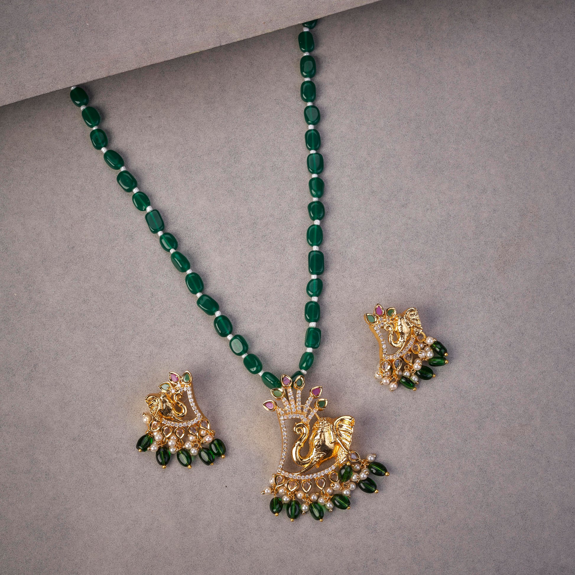 The Ganpati Gold Plated Locket Set with Earrings exudes refined elegance through its intricate design and rich gold plating. Featuring a beautifully crafted locket adorned with Ganpati motifs paired with matching earrings, this set is perfect for adding a sophisticated and cultural touch to any outfit. Ideal for festive occasions or graceful everyday wear, it blends tradition with timeless style.
