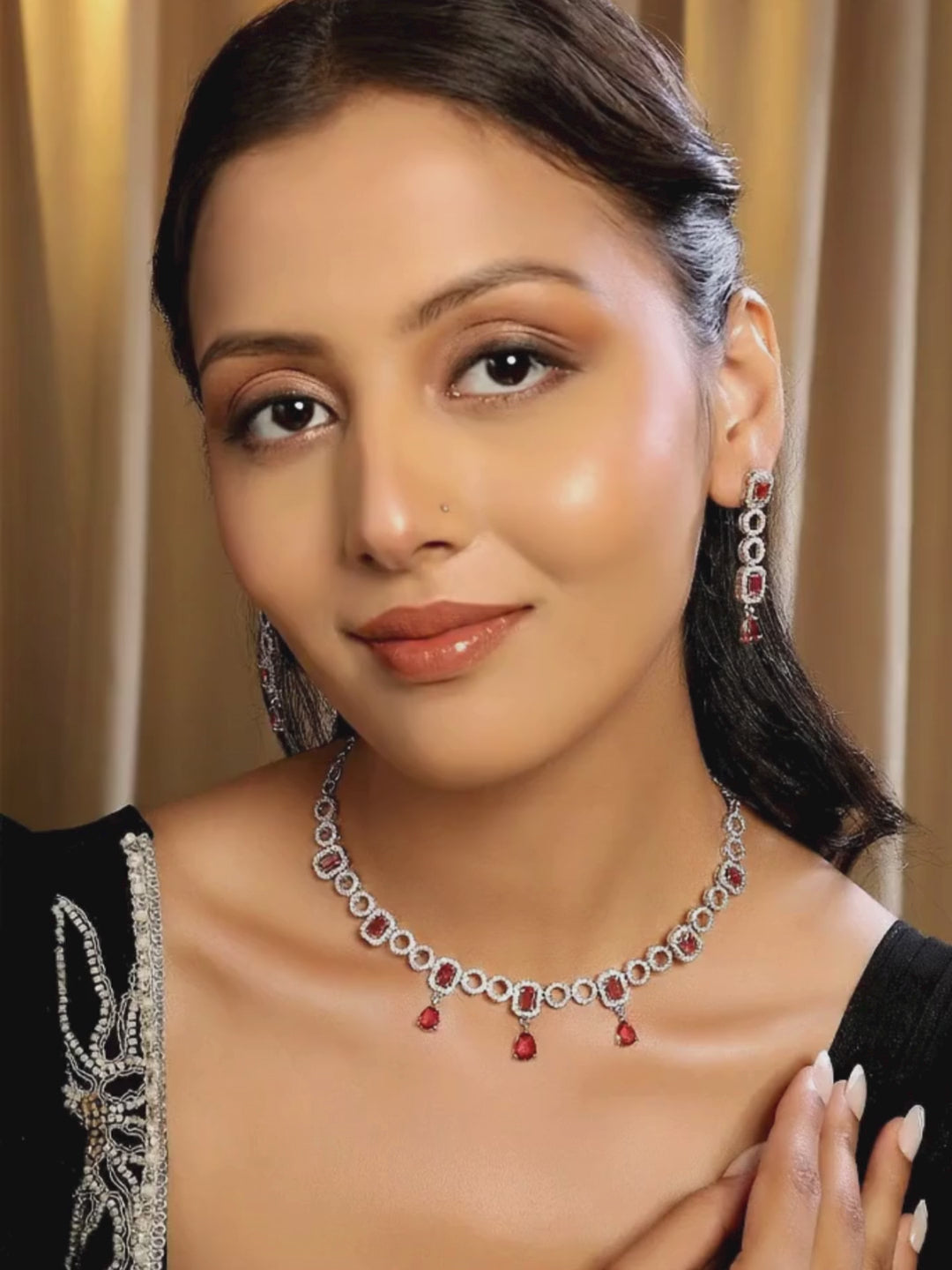 Discover understated luxury with this curated AD jewelry set, where precision-cut stones meet refined metalwork. American diamonds in this collection are selected for their exceptional clarity and light performance, delivering a luminous quality that rivals traditional gemstones. The set's design philosophy emphasizes proportion and balance, allowing each piece to complement rather than dominate your appearance. Rhodium or precious metal plating ensures longevity and maintains the jewelry's pristine aesthetic through regular wear. The coordinated earrings provide flexibility—wear them independently or as part of the complete ensemble for maximum impact. Ideal for those who appreciate jewelry that speaks through craftsmanship rather than ostentation. A discerning choice for celebrations, formal occasions, or anyone seeking everyday luxury with substance.