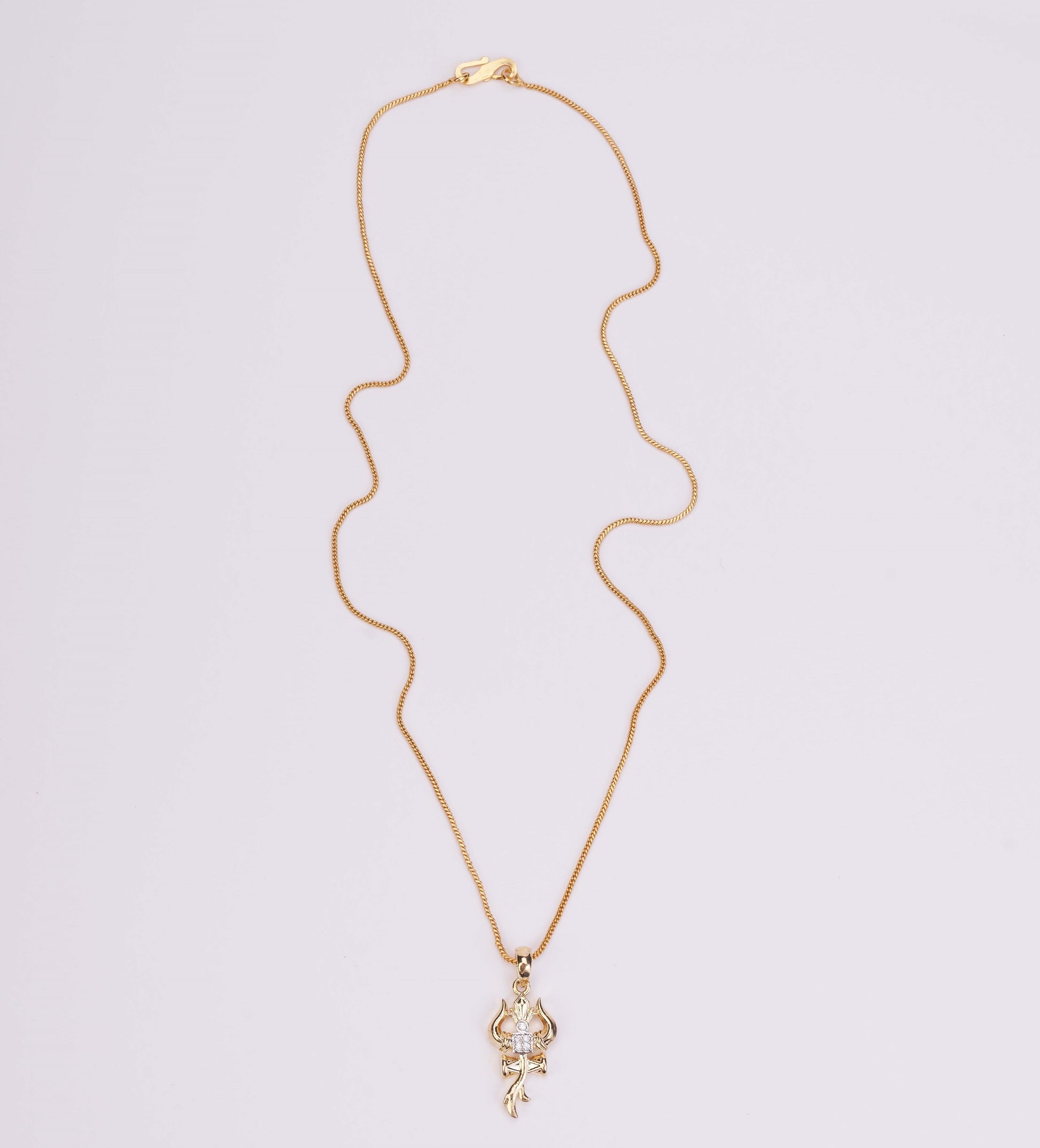 Embrace divine grace with the Trishul Mahadev Gold Plated Locket Set. Featuring a finely crafted Trishul symbol, this set blends spiritual significance with elegant gold plating. It’s an ideal choice for those who appreciate meaningful jewelry with a polished and sophisticated appeal.